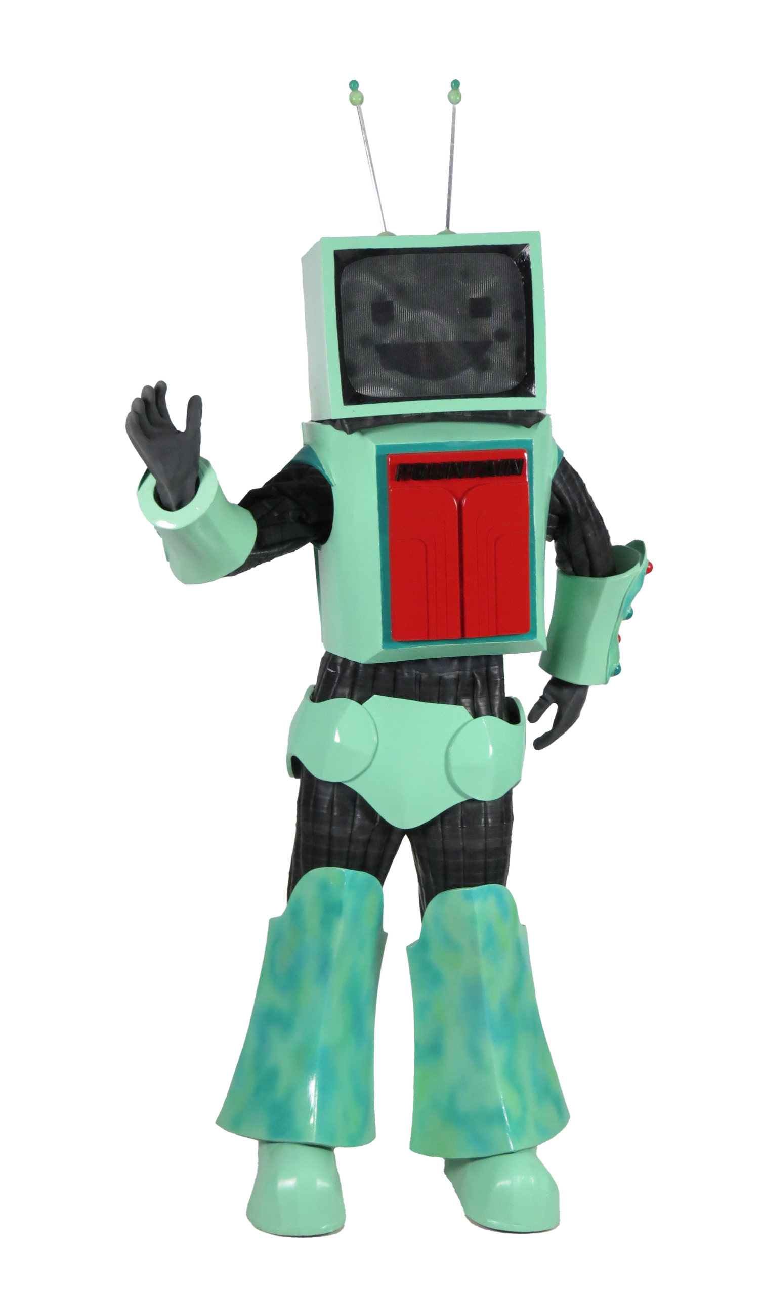 This project was inspired by the short story ‘The Subliminal Man’ written in 1963 by science fiction writer J.G. Ballard, in which the population’s consumer habits are controlled by subliminal advertisement signs. From this story, I wrote a television screenplay but adapted it with the core of it being a critique of corporate power in our food system. This project was in reaction to the research of Dr Chris van Tulleken in his book ‘Ultra-Processed People’ about ultra-processed food (UPF) and how UPF companies manipulate our food environment.In this 1970s retro-futuristic dystopia, the volume of advertising is suffocating to the extent that there are advertisement robots wondering around. But they aren't quite the fun and friendly robots they appear to be.